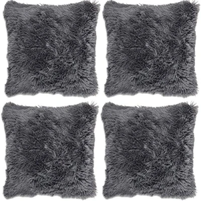 Adore 4 x Long Pile Super Soft and Cuddly Shaggy 17x17 (43x43cm) Cushion Cover, Charcoal
