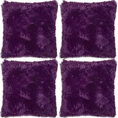 Adore 4 x Long Pile Super Soft and Cuddly Shaggy 17x17 (43x43cm) Cushion Cover, Purple
