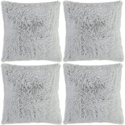 Adore 4 x Long Pile Super Soft and Cuddly Shaggy 17x17 (43x43cm) Cushion Cover, Silver