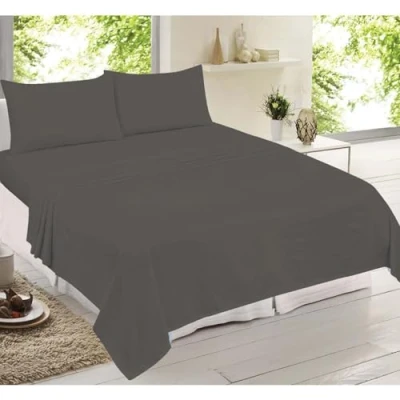 Adore Home 100% Cotton Flannelette Sheet Set Fitted Sheet, Flat 1 x Pillowcases Bed, Dark Grey, Single