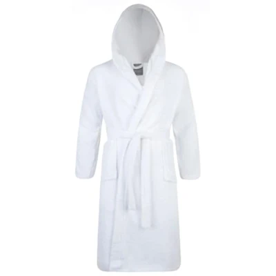 Adore Home 100% Cotton Terry Towelling Hooded Shawl Collar Bathrobe Medium,White