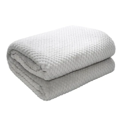 Adore Home Fleece Honeycomb Throw Soft Waffle Popcorn Blanket For Sofa Bed Travel, Silver, 100x150cm