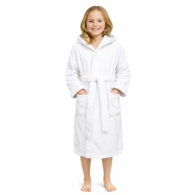 Adore Home Kids 100% Cotton Terry Towelling Hooded Shawl Collar Bathrobe (Age 10 11, White)