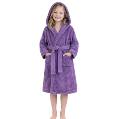 Adore Home Kids 100% Cotton Terry Towelling Hooded Shawl Collar Bathrobe (Purple, 10 11 Years)
