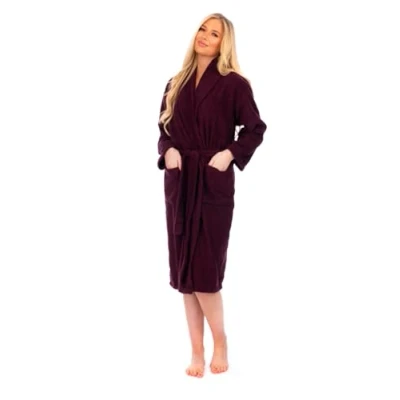 Adore Home Ladies 100% Heavy Cotton Shawl Collar Bathrobe Terry Towelling Bath Robe Dressing Gown, Aubergine, XL