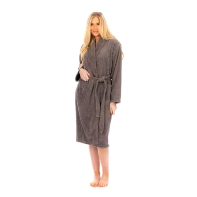 Adore Home Ladies 100% Heavy Cotton Shawl Collar Bathrobe Terry Towelling Bath Robe Dressing Gown, Slate, S