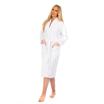 Adore Home Ladies 100% Heavy Cotton Shawl Collar Bathrobe Terry Towelling Bath Robe Dressing Gown, White, L