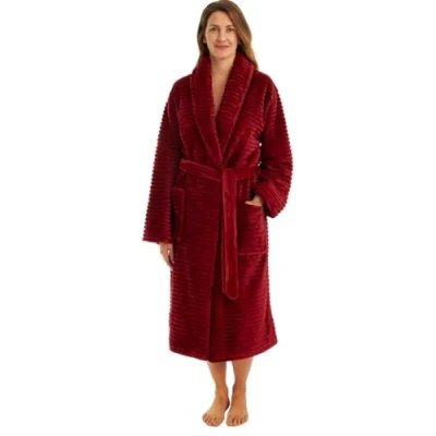 Adore Home Ladies Extra Warm Dressing Gown Luxurious Ribbed Fleece Bathrobe with Cosy Sherpa Lining, Wine, S M