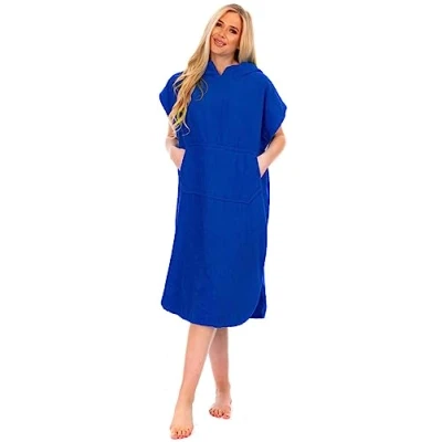 Adore Home Ladies Premium Changing Robe Unisex Hooded Poncho 100% Cotton with Pocket Beach Terry Towelling Towel Swimming Surf (Royal Blue, 2XL/3XL)
