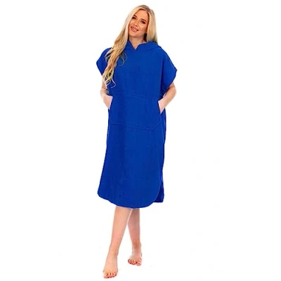 Adore Home Ladies Premium Changing Robe Unisex Hooded Poncho 100% Cotton with Pocket Beach Terry Towelling Towel Swimming Surf (ROYAL BLUE, S/M)