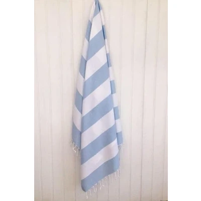 Also known as Peshtemal or Fouta these highly versatile towels are great for home or outdoors This hammam towel has a towelling reverse making it super absorbent while still being that great quality hammam style towel Pastel colour powder blue with white looks great on the beach. A classic design with the traditional tassels associated with Turkish style towels While the towel may be lightweight its absorbency isn't. Hammam towels are used traditionally in steam baths and are renowned for their absorbency. This towel has the plus of a towelling reverse making extra soft and absorbent Machine Washable and 100% cotton