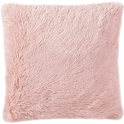 Adore Home Long Pile Super Soft and Cuddly Shaggy 17x17 (43x43cm) Cushion Cover (Blush Pink)