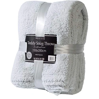 Adore Home Luxury Double Size Fleece Blanket Teddy Bear Throws for Sofa Bed Soft Warm 150x200cm, Silver