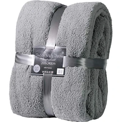 Adore Home Luxury King Size Fleece Blanket Teddy Bear Throws for Sofa Bed Soft Warm 200x240cm, Slate