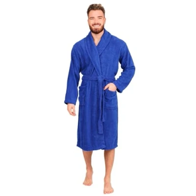 100% Combed Cotton Towelling - Made from soft, absorbent combed cotton that dries like a towel and feels comfortable against the skin Heavyweight Cotton Bathrobe - Thick terry towelling provides warmth and comfort, ideal for after bathing, showering or everyday lounging Classic Shawl Collar Style - Timeless shawl collar design offers a relaxed, comfortable fit for daily use Two Deep Side Pockets - Practical deep pockets for warming hands or carrying small essentials around the house Easy Care Mens Dressing Gown - Machine washable for regular use. Please note colours may vary slightly due to lighting and fabric dyeing