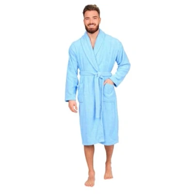 Adore Home Mens 100% Cotton Bathrobe Terry Towelling Shawl Collar Bath Robe Dressing Gown, Light Blue, XXL