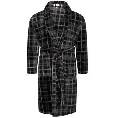 Adore Home Mens Soft Warm Flannel Fleece Bathrobe Dressing Gown Shawl Collar, Check Grey, 4XL 5XL