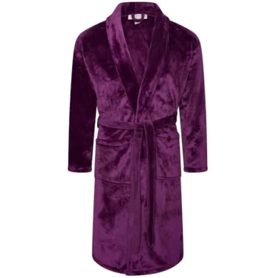Adore Home Mens Soft Warm Flannel Fleece Bathrobe Dressing Gown Shawl, Purple