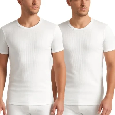 Adore Home Mens Thermal Vest White or Charcoal Heat Trapper Short Sleeve Warm Underwear, White, Medium