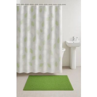 Adore Home PEVA Shower curtain & Chenille Bath Mat Set Matching, Lime Leaves