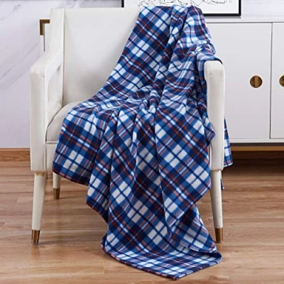 Adore Home Soft and Warm Single 120x150cm Tartan Check Printed Fleece Throw for Sofa Bed Travel Car Blanket (Blue, Check)