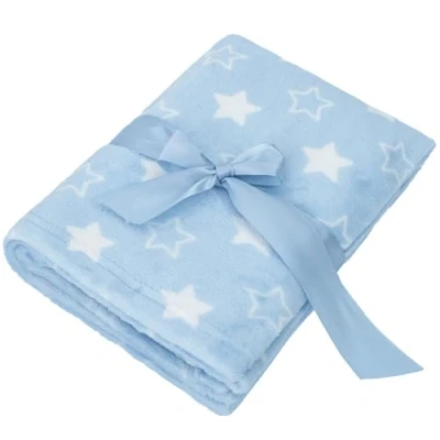 Adore Home Soft Fleece Baby Blanket Plush Flannel Newborn Moses Basket Pram Girl & Boy, Blue With Stars, 60x90cm