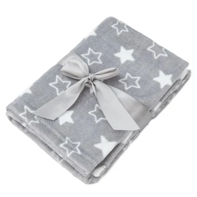 Adore Home Soft Fleece Baby Blanket Plush Flannel Newborn Moses Basket Pram Girl & Boy, Grey With Stars, 60x90cm