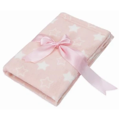 Adore Home Soft Fleece Baby Blanket Plush Flannel Newborn Moses Basket Pram Girl & Boy, Pink With Stars, 60x90cm