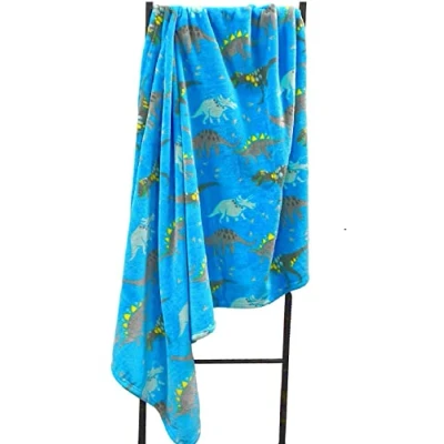Adore Home Super Soft Fleece Dinosaur Blanket Kids Character Blue & Cuddly 100x150cm