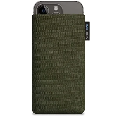 Adore June Classic Olive Green Protection Sleeve compatible with iPhone 15 14 / Pro, Pouch Case Made of Durable Fabric Display Cleaning Effect