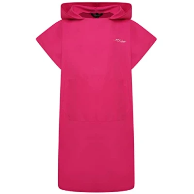 Adore Kids Changing Robe Quick Drying With Hood and Pocket Poncho Towel Ideal For Beach Swimming Surfing, Pink, Age 10 13