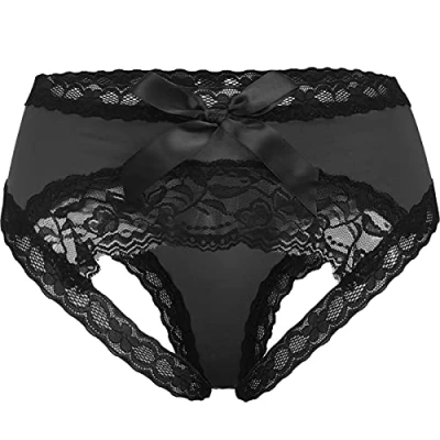 Adove Women Sexy Lace Panties Bowknot Briefs Midnight Lingerie Hipster Underwear, Black, S