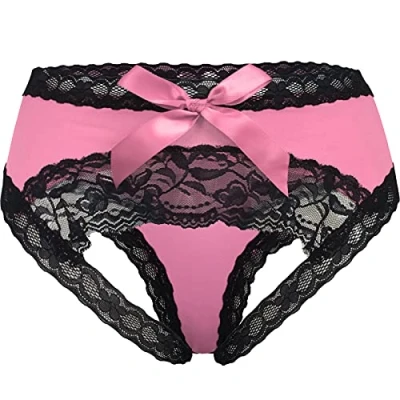 Adove Women Sexy Lace Panties Bowknot Briefs Midnight Lingerie Hipster Underwear, Pink, S
