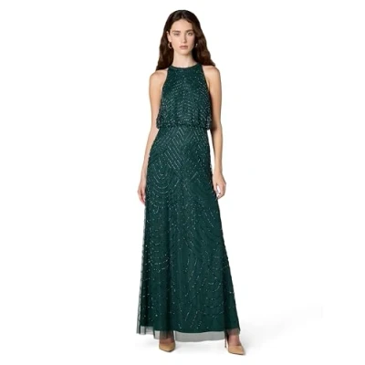 Adrianna Papell Women's Halter Art Deco Beaded Blouson Dress Special Occasion, Dusty Emerald, 20