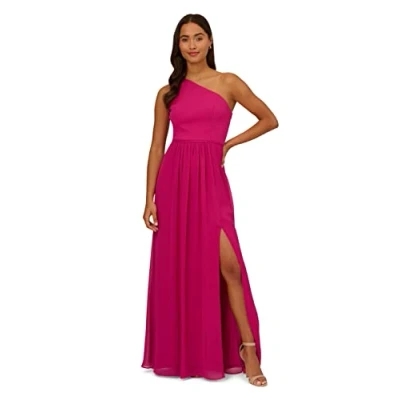 Adrianna Papell Women's One Shoulder Chiffon Gown Special Occasion Dress, Bright Magenta, 14