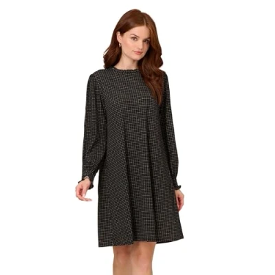 Adrianna Papell Women's Printed Ruffle Neck Knit Dress, Black, M