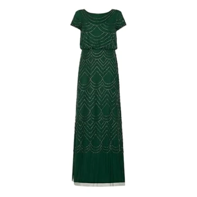 Adrianna Papell Women's Short Sleeve Blouson Beaded Gown Formal Night Out Dress, Dusty Emerald, 16