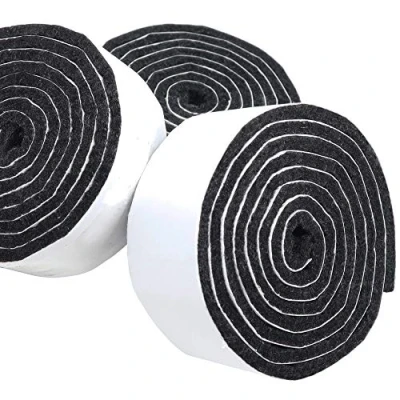 Adsamm® / 3 x self adhesive felt Strips/Black 1.14x39.37'' (29x1000 mm) rectangular 0.138'' 3.5 mm thick stick on furniture glides/Furniture & Chair Glides