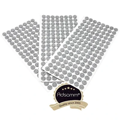 ø 0.47'' (ø 1.2 cm) / Grey / round / Self-adhesive felt pads made of robust 0.138'' (3.5 mm) thick synthetic fibres to facilitate the silent movement of furniture and ensure safe and versatile protection of furnishing and floors from scratches and scuffing. Practical, ductile and functional, they are designed for use at home as well as in the professional sector, in offices, shops, hotels, restaurants, clubs, public places, surgeries, clinics, nursing homes, kindergartens, schools, etc., as well as in DIY and hobby modelling. Stable, solid and reliable, they are suitable for light and medium-weight furnishings such as chairs, stools, armchairs, sofas, tables and coffee tables, cabinets, chests, single beds, bedside tables, chests of drawers, shelves, statuettes, etc. Discreet, durable yet gentle, they are suitable for use on all types of smooth surfaces, both indoors and in a protected outdoor environment. Package contents: 384 x self-adhesive felt pads (= 3 sheets each 128 pieces) /also available in different multi-packages -> (click on Adsamm), Manufacturer: Adsamm
