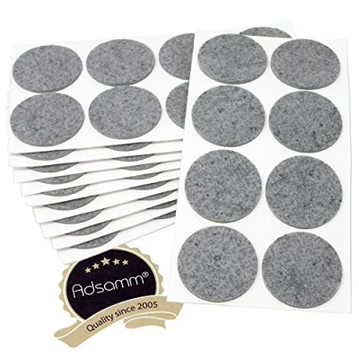 ø 2.36'' (ø 6.0 cm) / Grey / round / Self-adhesive felt pads made of robust 0.138'' (3.5 mm) thick synthetic fibres to facilitate the silent movement of furniture and ensure safe and versatile protection of furnishing and floors from scratches and scuffing. Practical, ductile and functional, they are designed for use at home as well as in the professional sector, in offices, shops, hotels, restaurants, clubs, public places, surgeries, clinics, nursing homes, kindergartens, schools, etc., as well as in DIY and hobby modelling. Stable, solid and reliable, they are suitable for light and medium-weight furnishings such as chairs, stools, armchairs, sofas, tables and coffee tables, cabinets, chests, single beds, bedside tables, chests of drawers, shelves, statuettes, etc. Discreet, durable yet gentle, they are suitable for use on all types of smooth surfaces, both indoors and in a protected outdoor environment. Package contents: 80 x self-adhesive felt pads (= 10 sheets each 8 pieces) /also available in different multi-packages -> (click on Adsamm), Manufacturer: Adsamm