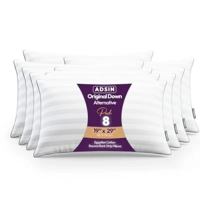 adsin Exrta Filled Egyptian Cotton Bounce Back Strip Pillows Hollow fibre Dust Resisted Filled, Ultimate Luxury Sleep, Premium Hypoallgernic (Egyptian Stripe, 8 Count (Pack of 1))