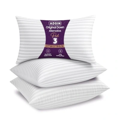 adsin Satin Stripe Microfiber Pillows 3 Pack Hotel Quality, Soft, Comfortable Suitable & Supportive Bounce Back Luxury for Stomach, Side Sleep, Standard Size (19"x29")