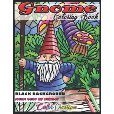 Adult Color By Number Gnome Coloring Book BLACK BACKGROUND: Cute and Fun Gnomes For Stress Relief Relaxation