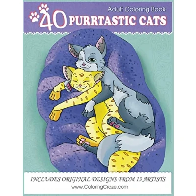 Adult Coloring Book: 40 Purrtastic Cats, Stress Relieving Pages for Adults By ColoringCraze: 1 (Domestic Animals Books Adults)