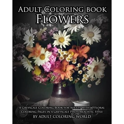 Adult Coloring Book Flowers: a Greyscale for Adults with 60 Floral Pages in Photorealistic Style: Volume 3 (Greyscale Books Adults)