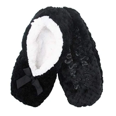 Adult Super Soft Warm Cozy Fuzzy Touch Sleeper Slippers Non Slip Lined Socks Black Large (UK Size 6 7)