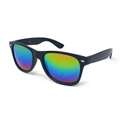Adults Classic Sunglasses with UV400 Protection Unisex (Matte Black Frame Rainbow Mirrored Lens)