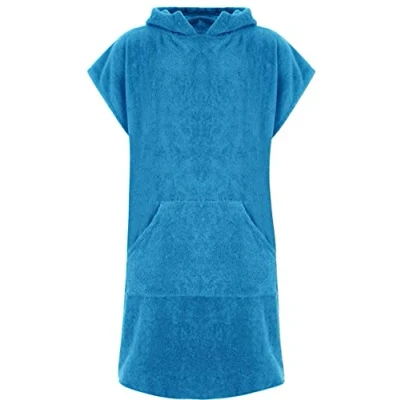 Adults Hooded 100% Cotton Changing Robe with Pocket Beach Terry Towelling Poncho Towel Swimming Surf (Aqua, 2XL/3XL)