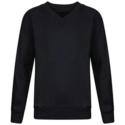Adults Kids V Neck Plain Sweatshirt Girls Boys School Office Wear Jumper Top Black Medium