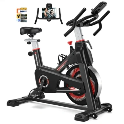 Advamsoler Exercise Bike for Home Use, Spin with App, LCD Display, Comfortable Seat Cushion & Tablet Holder, Quiet Indoor Cycling Equipment, 350LBS Capacity